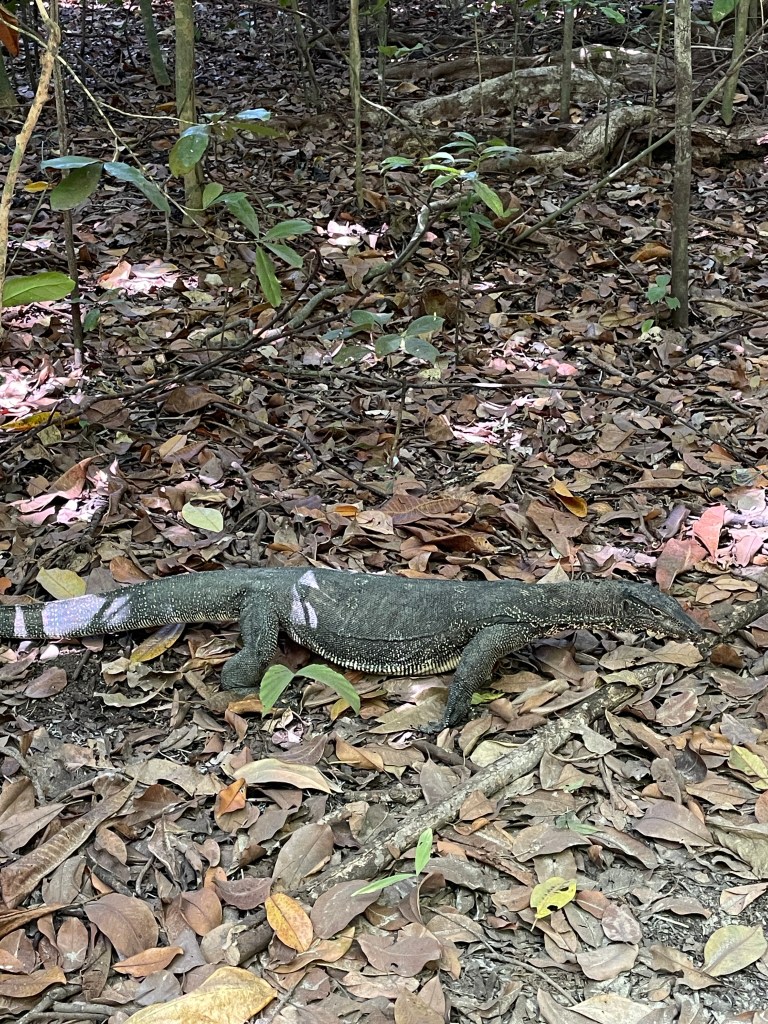 Nuestra siguiente parada fue una isla un poco más pequeña, en donde comimos un buffet de tallarines con salsa de soya y verduras, y caminamos por una jungla habitada por lagartos monitores.
